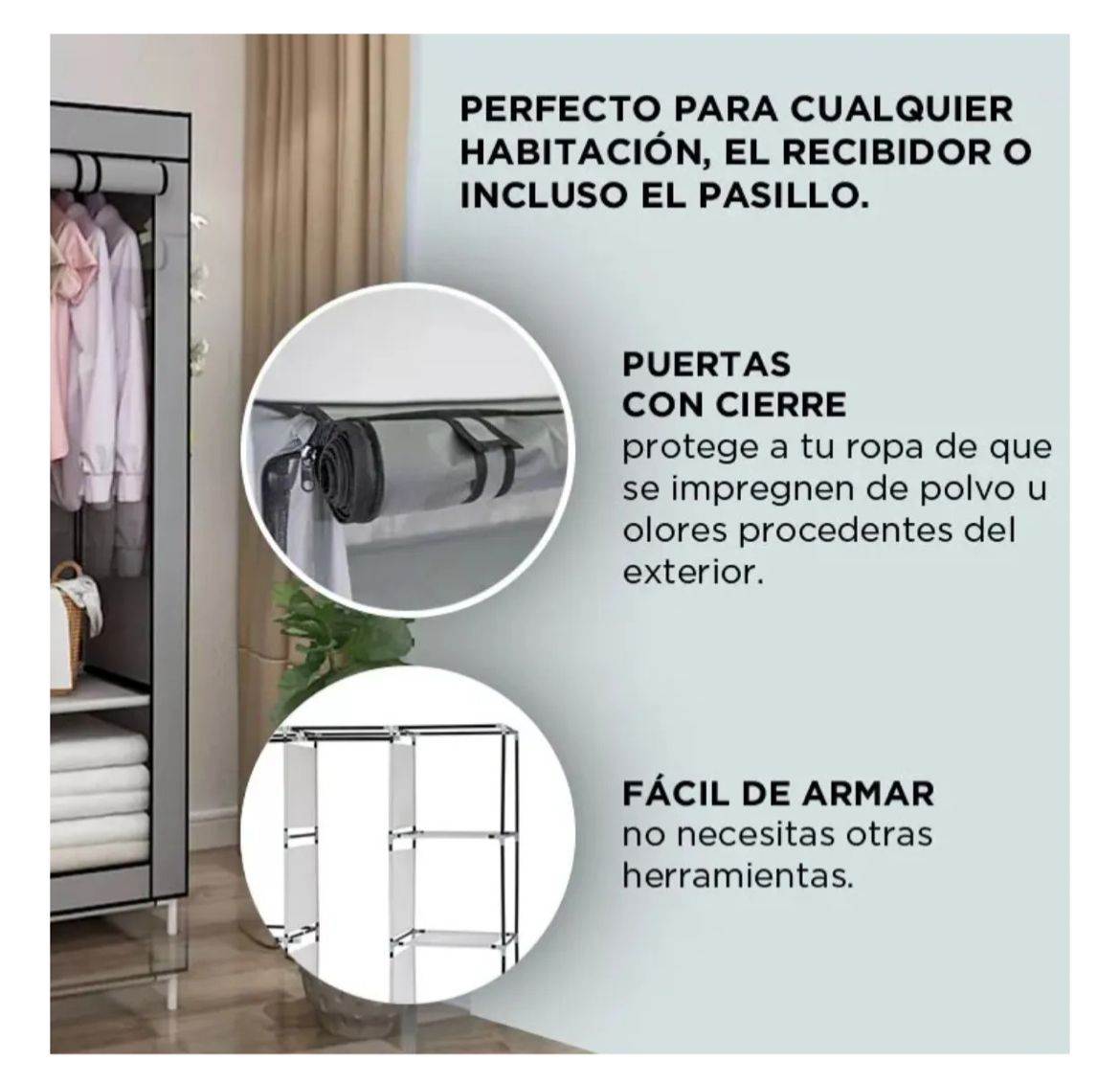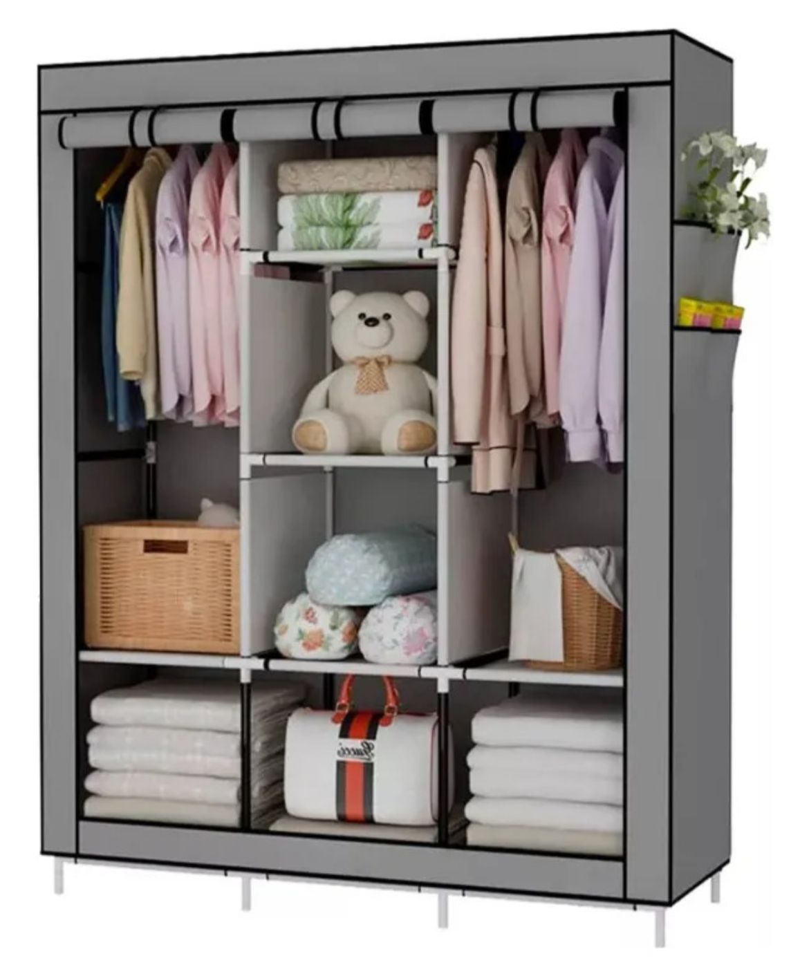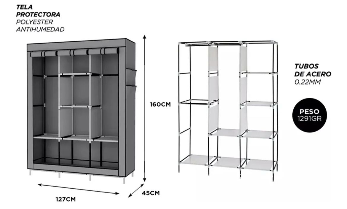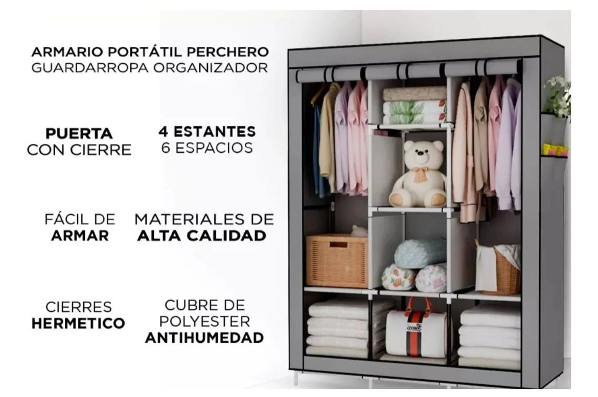 Armario de almacenamiento portátil para satisfacer sus necesidades de almacenamiento. Resistente al agua. Tubo de acero de alta calidad Conectores plástico PP. Fácil de armar, no requiere herramientas.