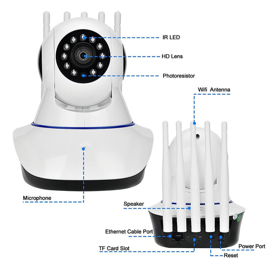 Resolución HD 1280 x 720 px. Cámara WiFi Robótica Inalámbrica.