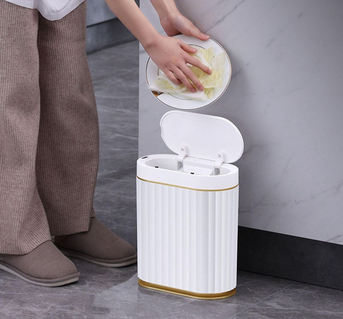 Contenedor De Basura Sin Contacto Con Sensor Inteligente Con Tapas Bote De Basura Para Baño De Oficina