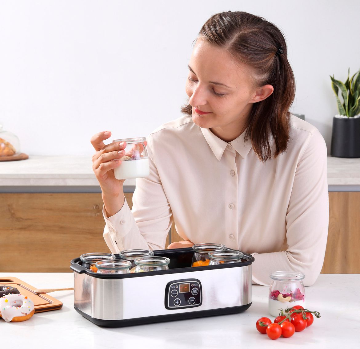 Disfruta de yogurt casero fresco y delicioso con gran facilidad. Nuestra yogurtera hace todo el trabajo por vos, manteniendo la temperatura perfecta para una fermentación ideal. Mejorá tu bienestar disfrutando de un yogur saludable, libre de conservantes y aditivos. -Diseño elegante y fina apariencia.
