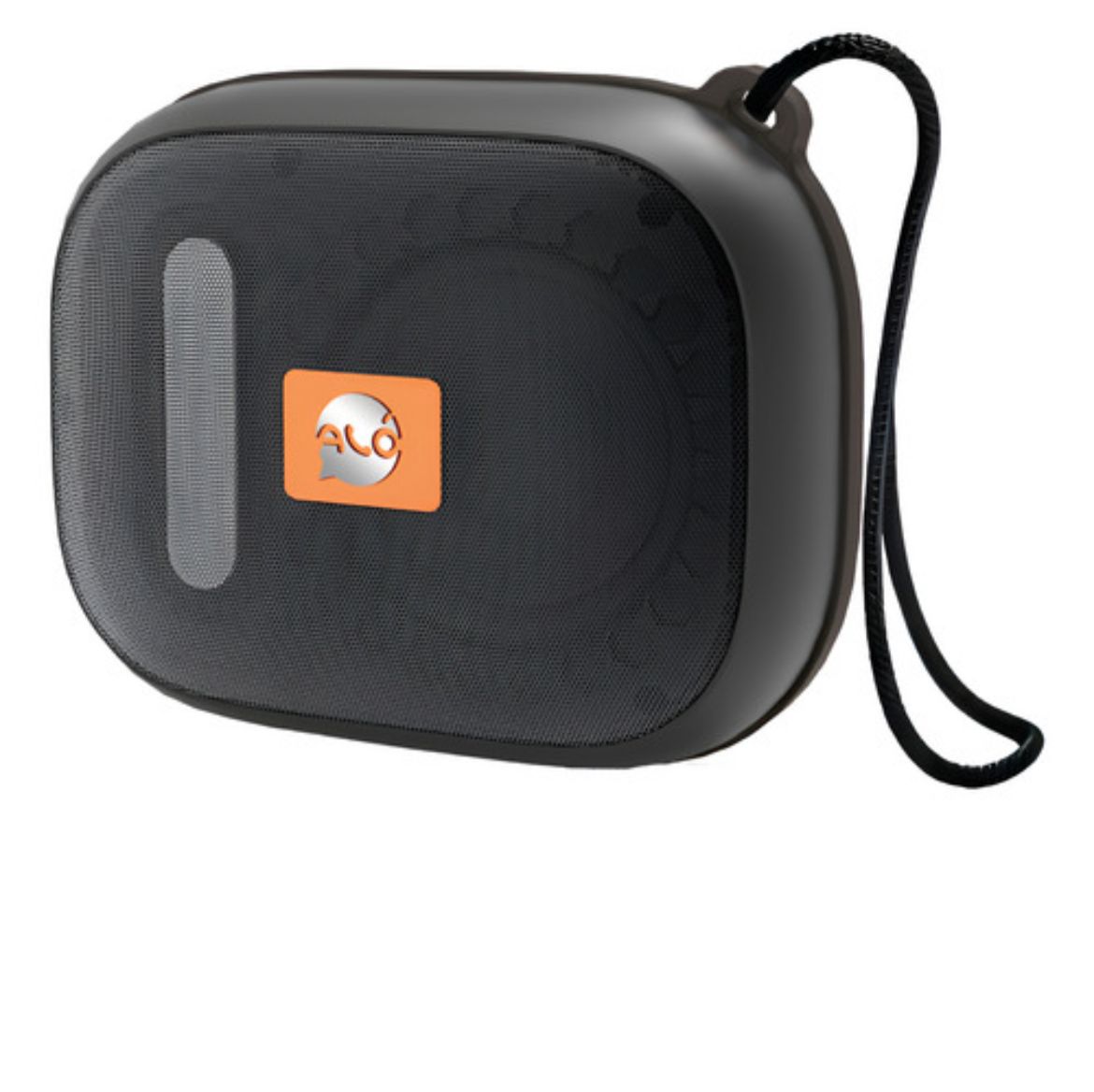 El parlante ALO portátil Bluetooth AL-PYBX-100 es la opción ideal para quienes buscan disfrutar de su música favorita en cualquier lugar. Con un alcance de 10 metros, este dispositivo inalámbrico te permite conectarte fácilmente a tu smartphone, tablet o cualquier otro dispositivo compatible. Su potente salida de 5 W garantiza un sonido nítido y con una calidad excepcional, perfecta para pequeñas reuniones con amigos o para relajarte en casa.