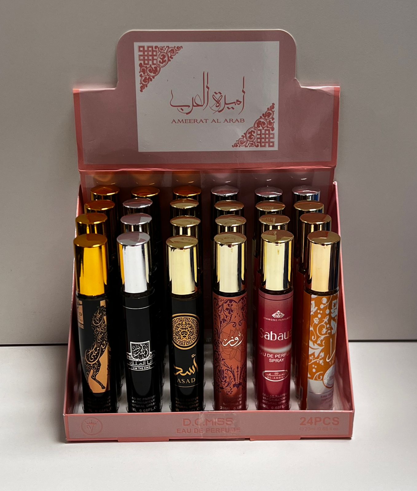 Perfumes tubos árabes en caja sellados x24 unidades. Variados (12 de hombre – 12 de mujer) cada uno de 20ml
